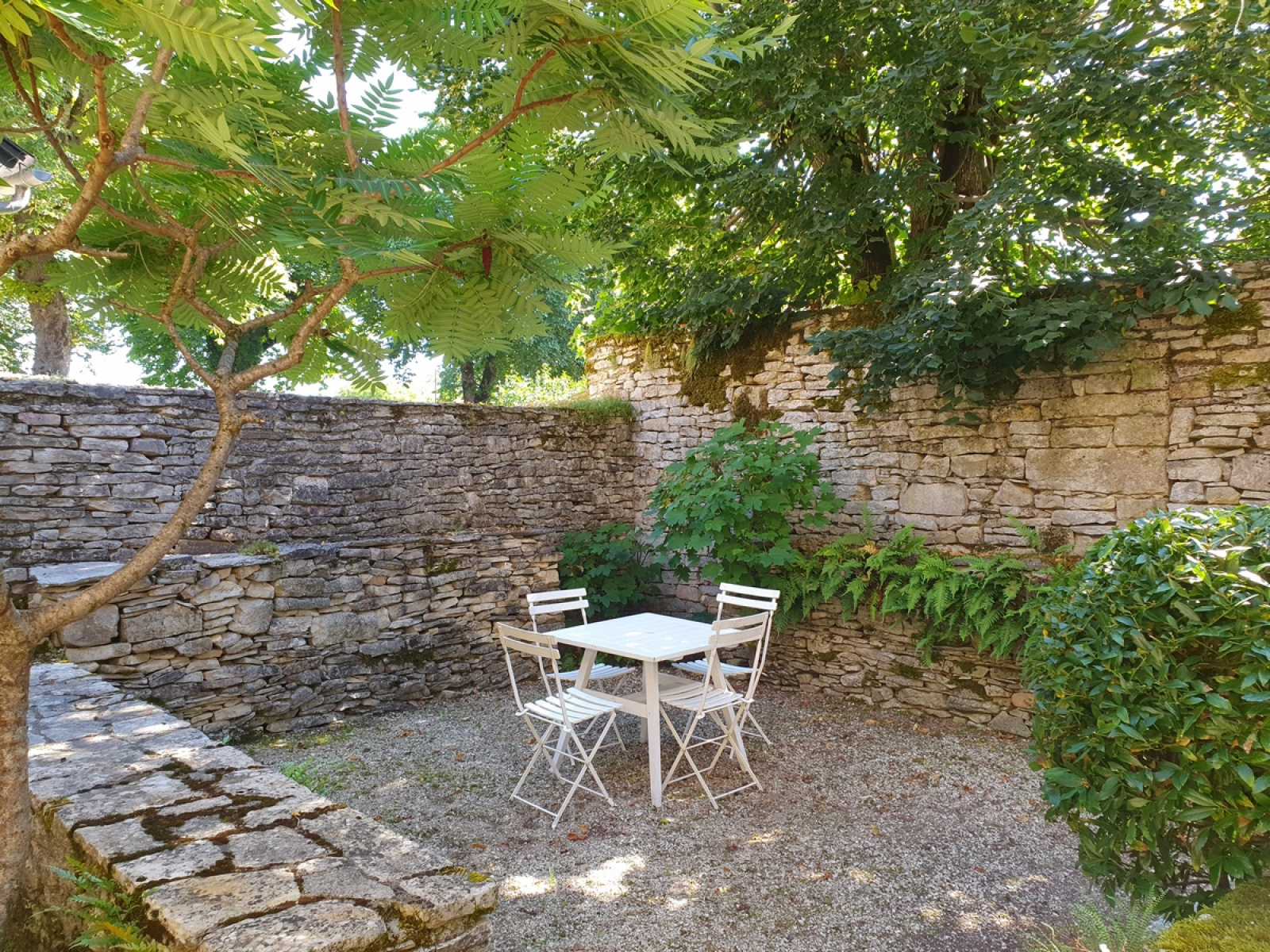 La grangette, depuis le jardin, par une belle arche, on pénètre dans un bâtiment à rénover qui offre une belle pièce d'environ 20m2 avec dans le prolongement un séchoir avec puits.