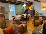 La maison d'habitation donnant sur le tour de ville et bénéficiant d'une vue dégagée s'ouvre sur un grand séjour/cuisine avec un parquet en châtaignier et une cheminée médiévale. Dans le prolongement, et sur un même niveau, se trouvent une grande chambre dont les fenêtres donnent sur le jardin et une salle d'eau avec douche et WC.