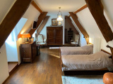 A l'étage supérieur, un palier dessert deux chambres et un cabinet de toilette avec WC.