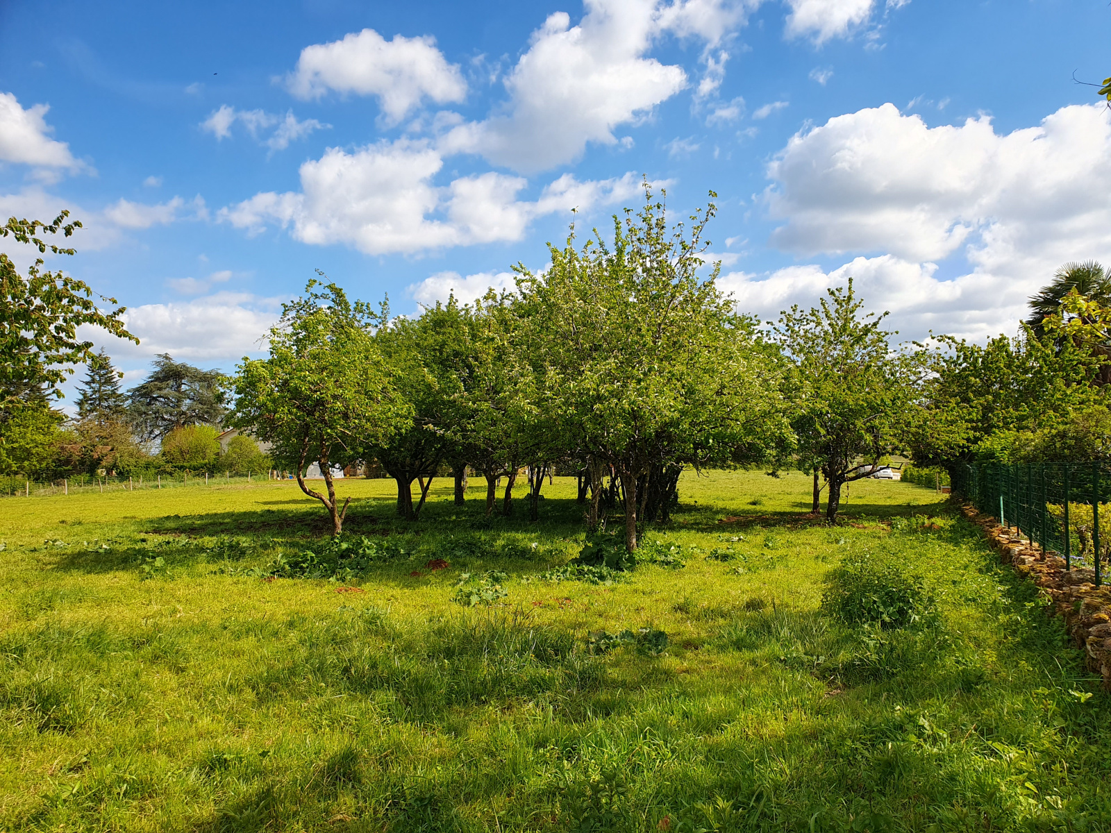 Accessible de par un chemin communal très peu emprunté. Forme atypique en L. Présence d'un verger sur la parcelle.