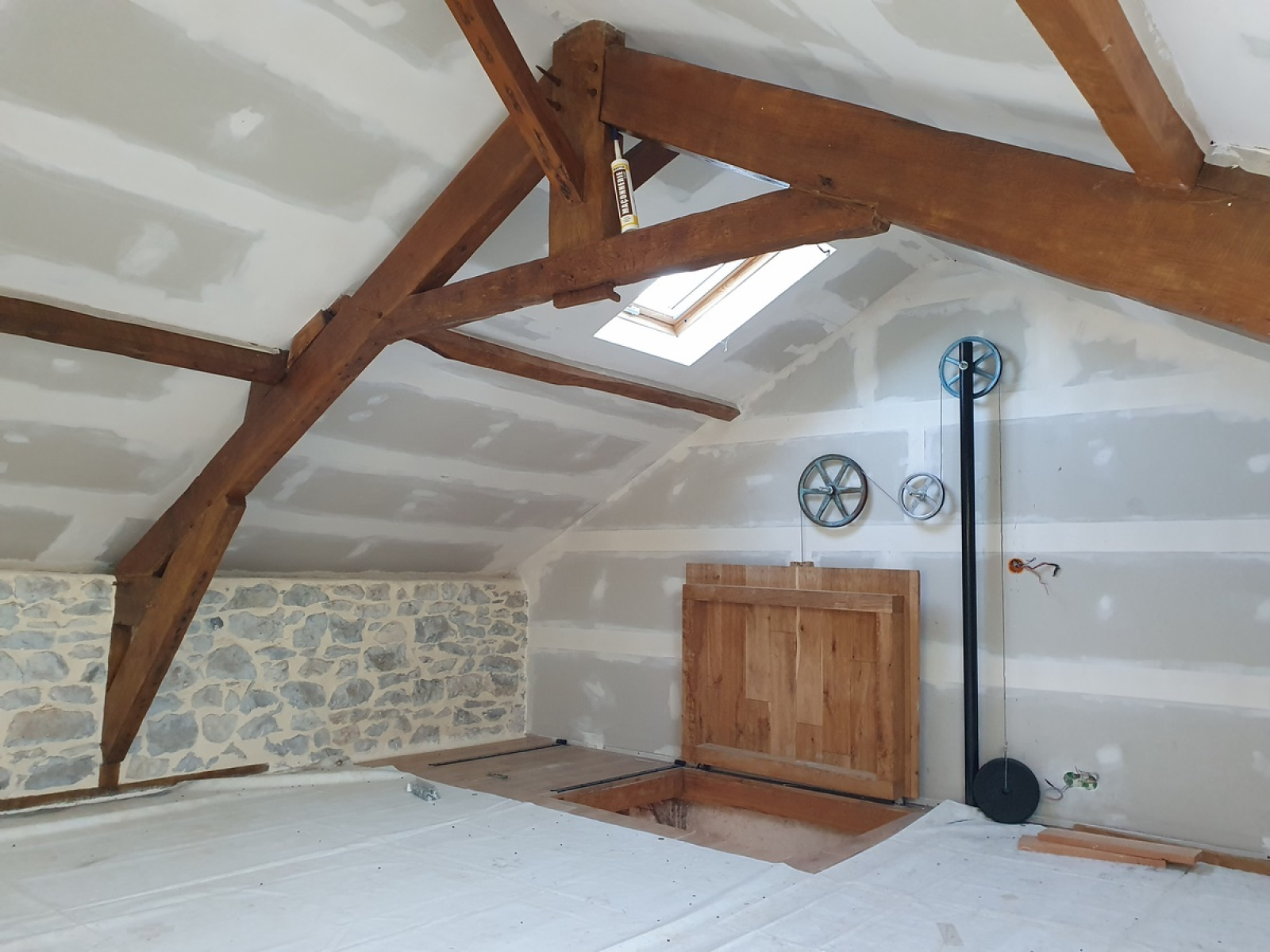 Les combles ont été isolés afin d' accueillir une grande chambre supplémentaire de 15m2 offrant un beau point de vue sur la campagne environnante.