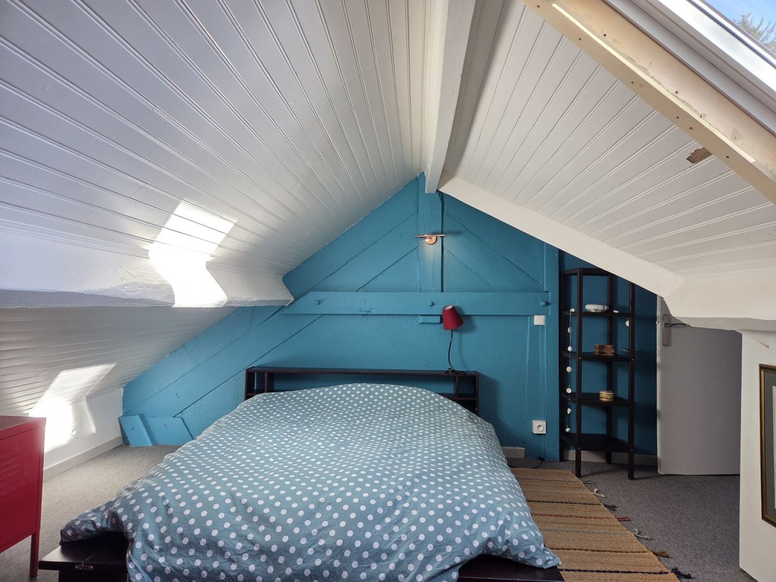 Les combles ont été aménagés et offrent un palier, une chambre mansardée et une pièce dédiée au rangement.